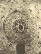 星象图—以巨大的莲花为中心,莲花外径约100厘米,其外围绕内、外两周星宿。内周为二十八宿,外周为黄道十二宫。该图引起中外研究古代天文学的学者们的浓厚兴趣。
