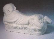 (宋)定窑白瓷孩儿枕—据说传世仅此一件精品。长40厘米,现藏北京故宫博物馆。