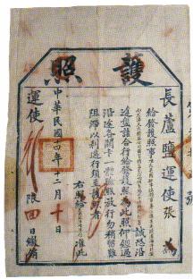 美国购盐护照。食盐在清代属外贸禁运物质,较少出口。直到民国年间,始有少量食盐出口,且要经严格审查。这份发给美国政府允许购买及运输盐的护照反映了这一历史事实。