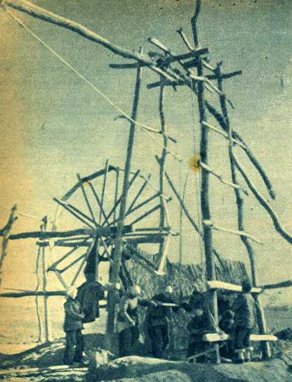 耿长锁农业生产合作社社员们。正在打一眼40丈深的新井,为了实现1952年的增产计划,作好防旱、抗旱工作,他们并计划今年再修一眼蓄井。