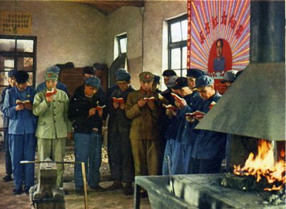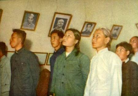 石家庄火车站的装卸工人李庆梅和他的爱人、孩子,以“斗私、批修”为纲,办起了家庭毛泽东思想学习班。