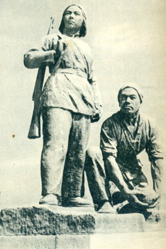配合解放军英勇保卫家乡的民兵塑像。