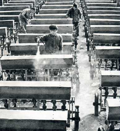华北制药厂的几个机修工,以对毛主席的无限忠心,遵循毛主席的教导,自己设计制造出了这台洗瓶机,效率抵得上被反动权威们称为逾越的四台进口洗瓶机,并节约了四分之三的人力。