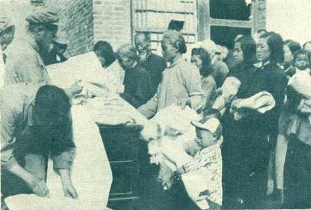 滦南灾民在政府的组织下,以土布换纱再换粮食。