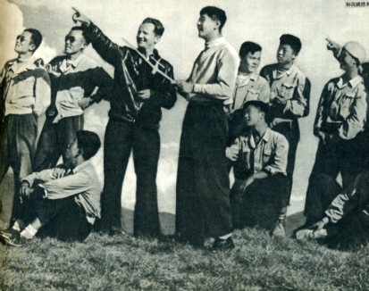 滑翔学校在张家口开办后,附近的青年学生对滑翔发生了热烈的兴趣。