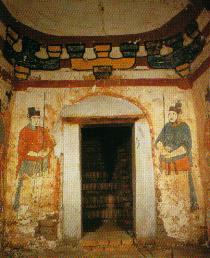 前室壁画—门吏图M1。宣化辽壁画墓群出土。
