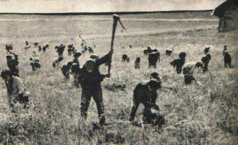 白音诺勒公社认真贯彻执行中央和省委关于发展药材生产的指示,本着边保护、边生产、边培育的原则,为国家采集、培育与制造了大批药材。图为少先队员们在大采药材。(1960年)