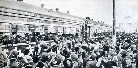 大庆职工欢送一批又一批战友去支援祖国新油田的开发和建设。