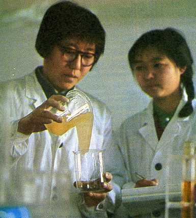科研人员在进行稠稀度可控制的新型压裂液的成胶试验。