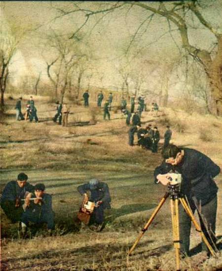 学生们在长春附近实习—勘查地形及采取地质标本。