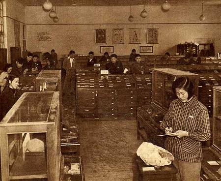学生们正在使用精确的苏联仪器测定矿石的矿质成分。