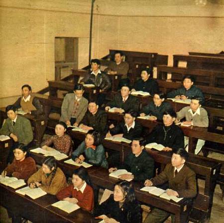 电机系发电厂专业组二年级学生正在听课。