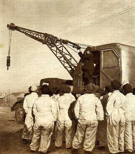 哈尔滨建设工程公司第五工程处机械处的工人正在进行冬训,以便明春施工时,可以提高他们的工作效率。