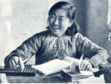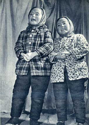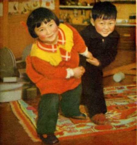 业余剧团的小演员姜秋萍(左)和杨玉芳。