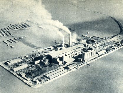 被洪水包围的哈尔滨水泥厂一直照常生产。