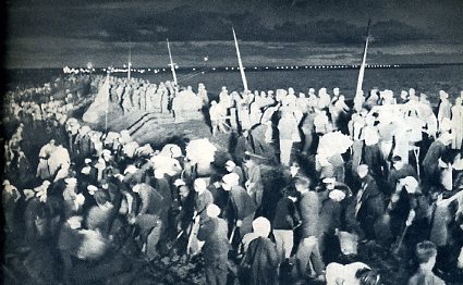 图为日夜领导防汛的指挥部,中立者是防汛指挥吕其恩。