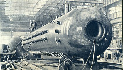锅炉厂制造的这个汽包,是5万千瓦汽轮发电机组不可缺少的设备。