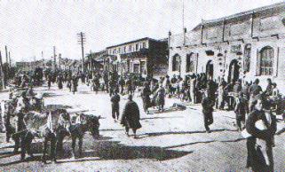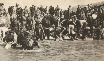 中共五常县委决定在牤牛河的中游龙凤山修建一座高21米,蓄水3亿立方的水库。图为民工在进行紧张的截流。(1959年)