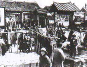 伪满时期,依兰县城内的露天市场。