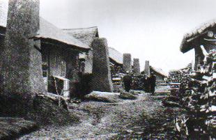 1933年7月,第二批日本移民入侵三江省依兰县七虎力村(日本人将此地改名为“千振乡”)。图为千振乡移民村落。有关日本移民的介绍,请见黑龙江省佳木斯市桦川县的主页。