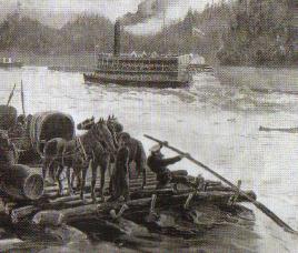 沙俄军队从海兰泡向中国增兵,对岸即为瑷珲镇。