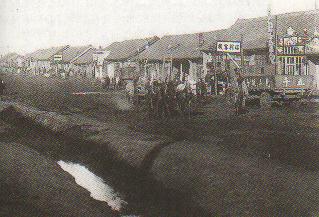 日本第二次移民团,在伪三江省桦南县武装占据七虎力河沿一带后,把原来不过350人的村庄,扩展为能容纳四千余人的大城镇,并名之为“千振乡”。图为“千振乡”的“湖南营”。有关日本移民的介绍,请见桦川县的主页。