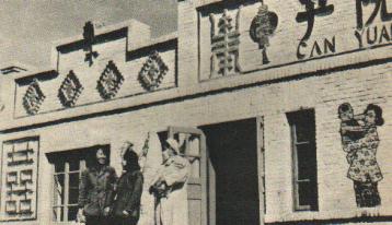 克东县原是黑龙江省发生克山病比较严重的县之一。解放后,在党和政府的领导下,克东县人民永远摆脱了不文明不卫生的景象。图为克东镇人民公社致富管理区的卫生工作者将医药送到田间,将开水送到田间。(1960年)