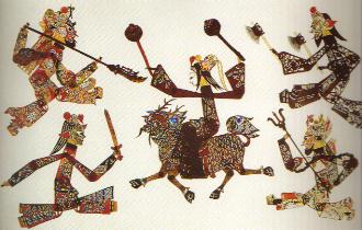 皮影《封神榜》中之“黄天化大战魔四将”。