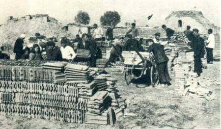 社里抽出一部分多余的劳动力去烧砖瓦,供应城市里的基本建设。