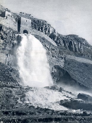 渠水通过泄水闸时形成的人工飞瀑。
