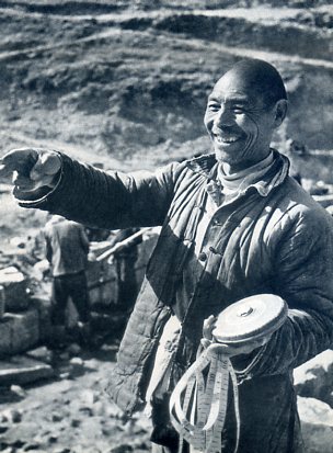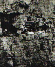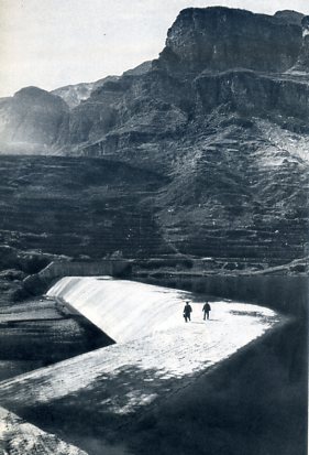 1969年7月6日,林县人民建成红旗渠。图为悬崖风餐露宿的建渠工人。