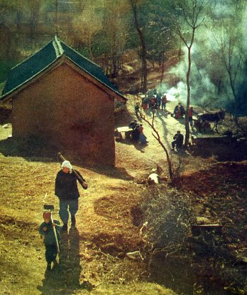 河南济源县王屋乡是古代传说“愚公移山”的地方。据说九十岁的愚公每天带着儿孙们开山挑土,要把挡在门前的两座大山移掉。人家劝他别干这种傻事,可是他说:“我死了有儿子,儿子还有儿子,世代相传,而山不会增高,怎么移不掉呢?”