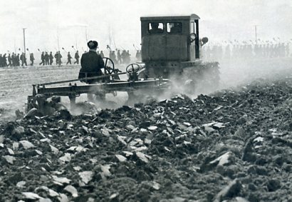 秦寨大队用自己积累的公积金买了一台《东方红》拖拉机。他们决心使全大队百分之八十的大秋地,实现高标准的电灌园田化。