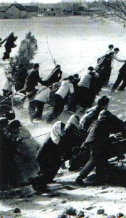 焦裕禄生前所在的兰考县人民正在运淤泥封沙丘。(1966年)