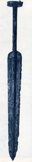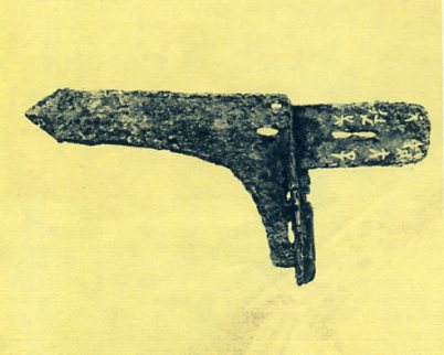 铜戈:上刻有铭文:“虢大子元徒戈”。考古工作者就从这件文物肯定了三门峡一带为周代的虢国遗址。