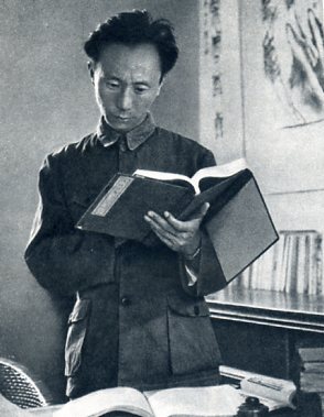 新乡专区农业科学研究所的技术员张履鹏在研究有关谷子生产的资料。