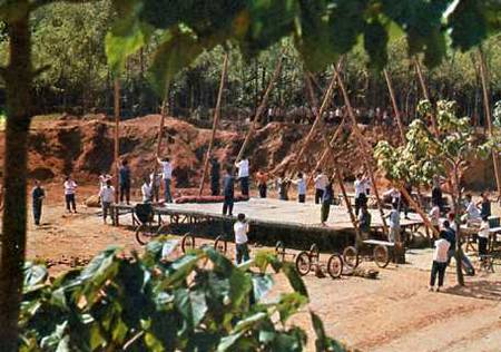 河南省鄢陵县豫剧团被群众誉称为“板车剧团”。十年来,他们用特制的板车,走遍全县的社社队队,为贫下中农演出。