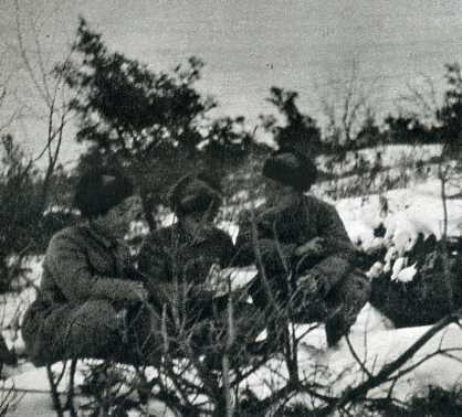 魏蘶(右一)一九五二年在朝鲜前线和中国人民志愿军战士在一起。