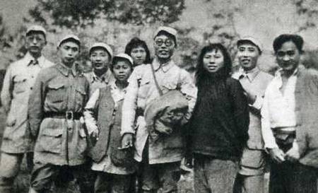 魏蘶(中)一九四四年在晋察冀抗日根据地与战友们合影。