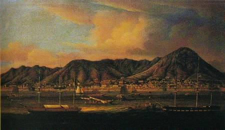 油画《香港鸟瞰》(42.5x75厘米)1862年