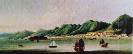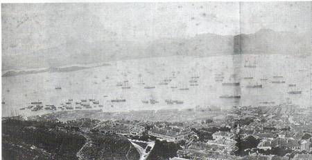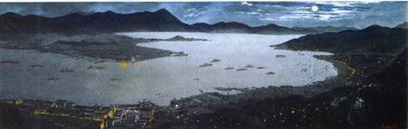 该画是从香港维多利亚向北远眺,九龙港一览无遗。