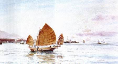水彩《香港的平底帆船》(23.5x43厘米)H.G. Gandy 20世纪早期