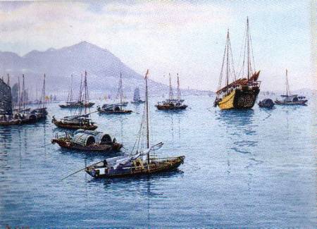 画面上看到福建驶来的帆船(注:即中国平底帆船)。1993年克利斯汀拍卖价350,000-400,000港元。