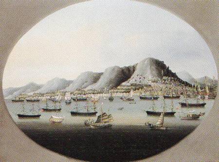 油画《香港鸟瞰》(59x44.5厘米)19世纪中期