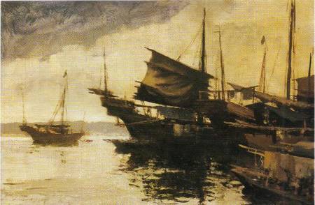 油画《香港的平底帆船》Edward Seago 20世纪中期