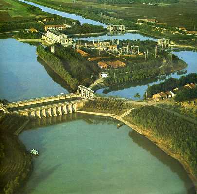 湖北省沔阳县排湖排灌站鸟瞰。这个排灌站排涝面积为五十万亩,同时还可灌溉农田二十万亩。