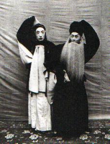 谭鑫培(1847-1917)原籍湖北江夏。其父志道,演老旦,有“叫天”之称。他被世人称作“小叫天”。当时北京有“满城争说叫天儿”之说,有“伶界大王”的美誉,与汪桂芬、孙菊仙并称为后“三杰”、后“三鼎甲”。图为《南天门》中谭鑫培(右)饰曹福,王瑶卿(左)饰曹小姐。
