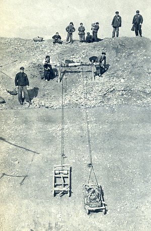 湖北当阳县有个跑马乡。农民刘明礼仿照起重机制造的吊杆,两端挂双钩,旋转时来回运土,工效比人挑高出4倍,它特别适用于陡坡与淤泥地。