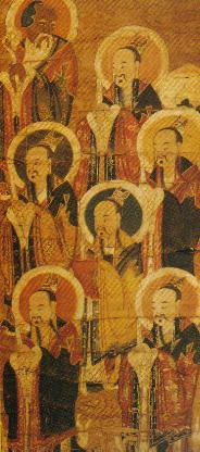功德画·南斗。湘西北地区流传。南斗本为六星,为与北斗七星对应,在其中增加南极仙翁为群神之首,故为七位,尊名分别是:南极太帝长生真君、南斗天辅司命府君、南斗天相同禄星君、南斗天枢变厄星君、南斗天梁延寿星君、南斗天童盗算星君、南斗天机上生星君。