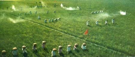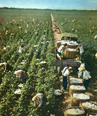 滨湖区的棉花单位面积产量,1958年就相当于1950年的2.4倍,今年比去年更高。这是澧县澧西人民公社的棉田。